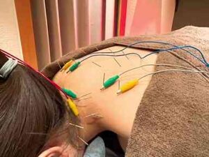 鍼灸では、首や肩、背中などの緊張している筋肉にアプローチし、筋肉をゆるめて血流を促していきます。