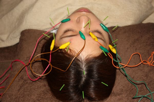 目のまわりや顔のツボに鍼を行い、血流を促進して筋肉や神経の働きを助けます。