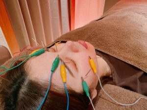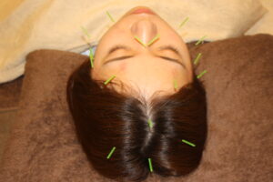目のまわりや顔のツボに鍼を行い、血流を促進して筋肉や神経の働きを助けます。