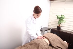 痛みのある下腹部に直接アプローチするだけでなく、気や血を巡らせるツボ、体を温めるツボ、自律神経を整えるツボなどを組み合わせて施術します。